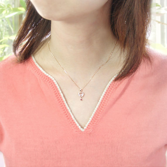 ラブリーだけど、子供っぽくならないのは、ハートの下で上品に揺れるピンクトルマリンが、女性らしさをプラスしてくれるから♪