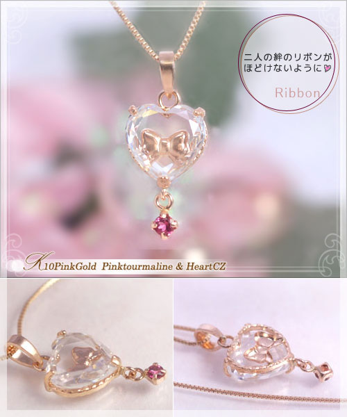 K10/K18WGピンクトルマリンネックレスラビングハート製造品 約20日間納期12,400円+税笑顔あふれる魔法のジュエル10月の誕生石ピントル&CZトリロジーK10WG P4〜5日以内に発送予定(土日祝除く)9,000円+税10月誕生石ネックレス ピンクトルマリン ネックレス ペンダント ハートキュービックジルコニア&リボン 「ラブリー・シュシュ」【K10ピンクゴールド(K10PG)】国産 日本製/製造オーダー品 約20日間納期恋するハートにリボンをとじこめた乙女心をくすぐってたまらない!かわいさです♪