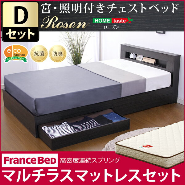 宮、照明付きチェストベッド【ローズン-ROSEN-(ダブル)】(マルチラススーパースプリングマットレス付き)(代引き不可)【S1】