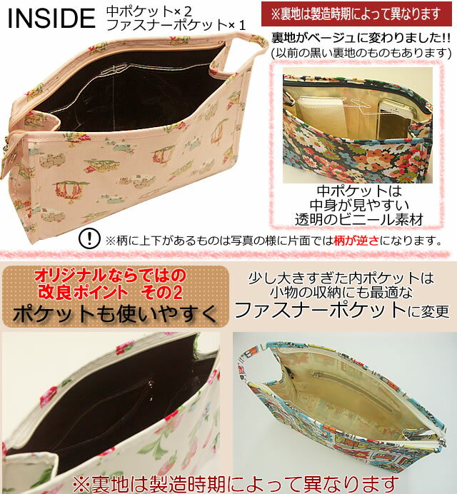 ■素材 合皮素材orビニールコーティング生地:サテン:ナイロン:金属 ■カラー ドットローズネイビー(花):ジャンボ(象):ガーデンホワイト:クラッシックカー(旧車):クロック(時計):イエロー(合皮):ウォ ンテッド:チェリー:フラワー:ハッピーデイ ■サイズ 縦:約16cm 横:約25cm マチ:約8cm ■その他 2点までメール便可 ※コーティング加工の為元々の生地に付いていた小さな汚れや生地を織る際の継ぎ目・ほつれ等がそのまま残っている場合があります。