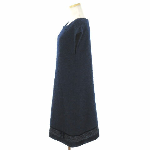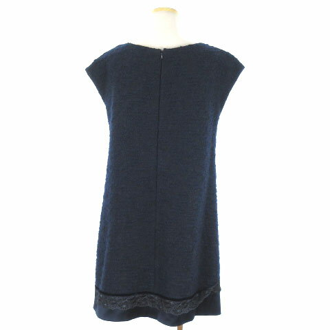 プレスポーズ PLACE PAUSE ワンピース ひざ丈 ノースリーブ ウール レース リボン 紺 ネイビー レディース 【中古】【ベクトル 古着】 180113 ブランド古着ベクトルプレミアム店